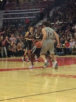 Gee-Gees point guard Mike L’Africain about to shoot a three-pointer at the Capital Hoops Classic, February 5th.
