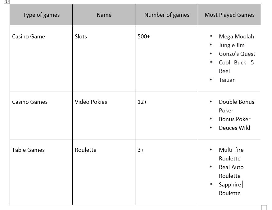 * Has mobile casino games