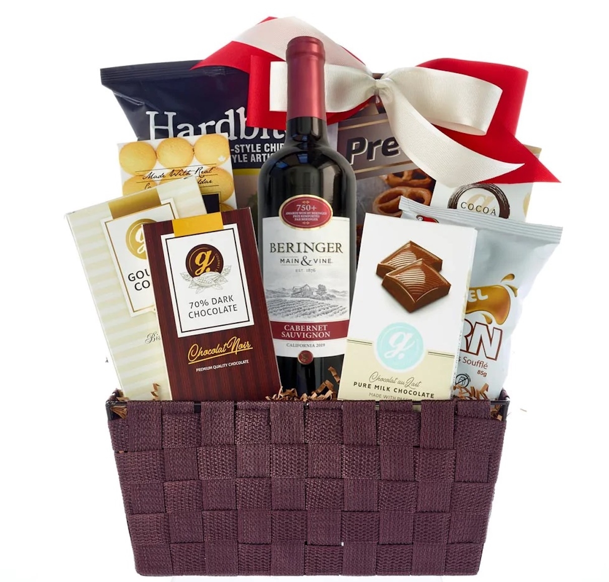 We recommend finding gift baskets that contain items that you would use to create a sweet and savoury charcuterie board. Charcuterie boards are all the rage right now, so what better way to lighten up your recipient’s day?