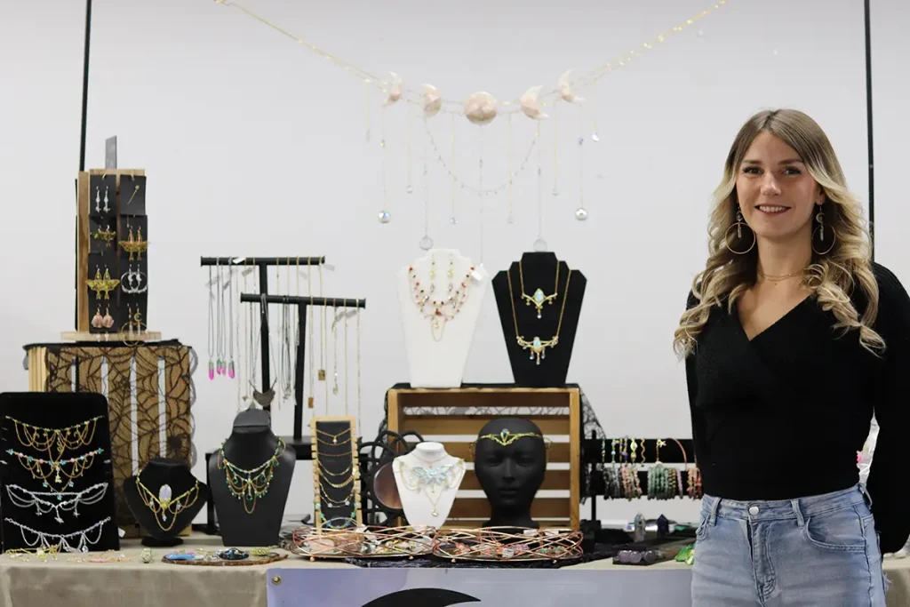 Apryl Norkett at her booth showcasing Jasper’s Meridians creations.