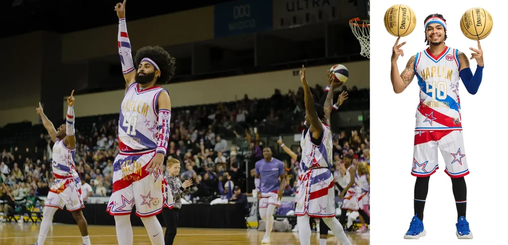 ABOVE: The Harlem Globetrotters turn the game into a full‑on spectacle with jaw-dropping athleticism, comedy, and pure courtside joy. (RIGHT) Rock ‘Wham’ Middleton.
