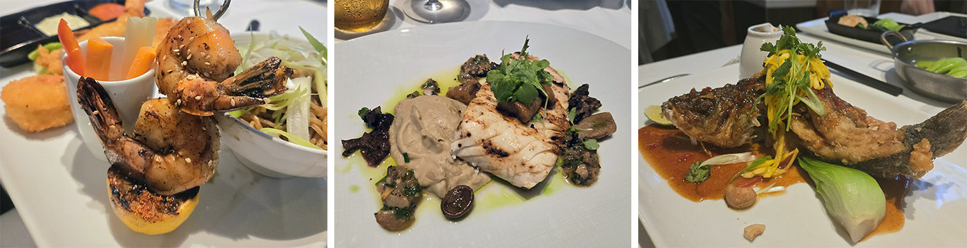ABOVE: A sampling of some of the delicious meals from the dining rooms Morimoto by Sea at the Pinnacle Grill and Canaletto.