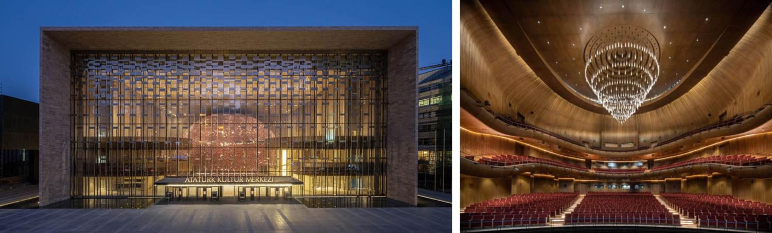 ABOVE: The rebuilt Atatürk Kültür Merkezi (AKM) opened its doors on October 31, 2021 with the innnaugral preformace of the 2021 Beyoglu Culture Route Festival. RIGHT: The AKM’s new 2,040-seat opera house.