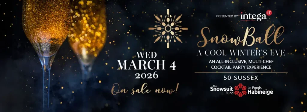 It’s almost time for the Snowsuit Fund’s largest fundraising event of the year — a night that gives everyone the chance to dress up (though not in a snowsuit!) for a spectacular gala evening. SnowBall: A Cool Winter’s Eve, presented by Intega IT, returns to its original venue at 50 Sussex on Wednesday, March 4, 2026.