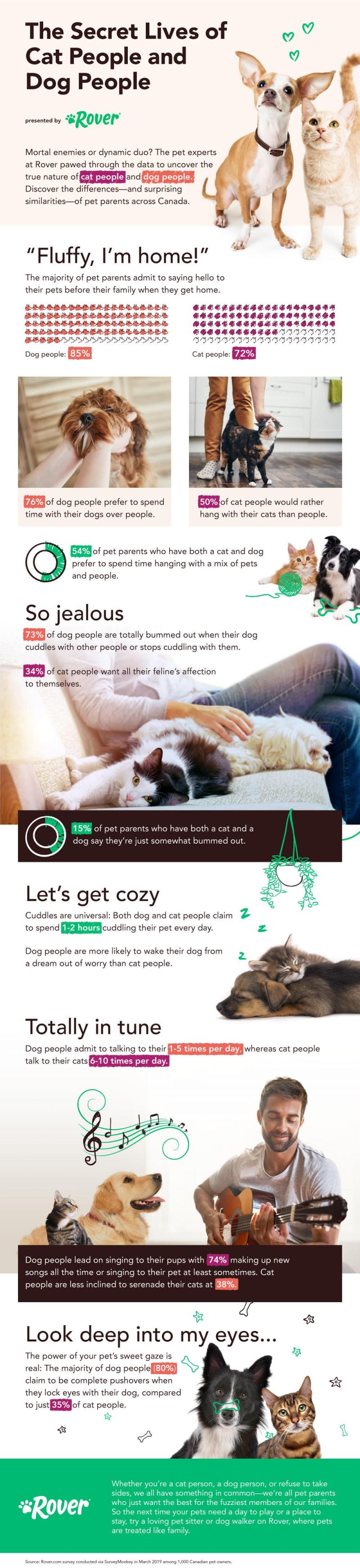Don't believe us? A recent study, released by Rover.com, the largest network of 5-star pet sitters and dog walkers, confirms that people are putting their dogs and cats at the top of their priority list. "The Secret Lives of Cat People and Dog People" report, which includes responses from more than 800 pet owners across Canada, revealed that cats and dogs occupy a familial role in pet parents' lives, affecting important financial decisions like buying a home (42 per cent), buying a car (40 per cent) or choosing furniture (37 per cent).