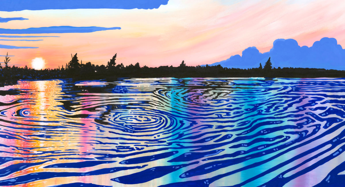 ABOVE: Sarah’s painting Black Rapids View demonstrates her love and inspiration of the Rideau River and is the first painting where she began exploring linework and movement in water.