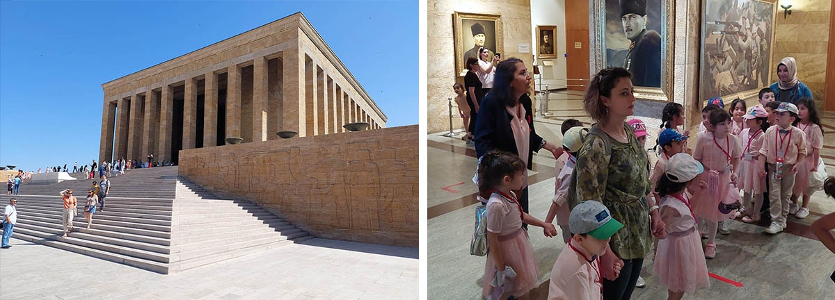 ABOVE: The Atatürk Mausoleum is the final resting place of Mustafa Kemal Atatürk, the leader of the Turkish War of Independence and the founder and the first President of Republic of Turkey. (RIGHT) School children visit Anitkabir (mausoleum) to learn about Atatürk.