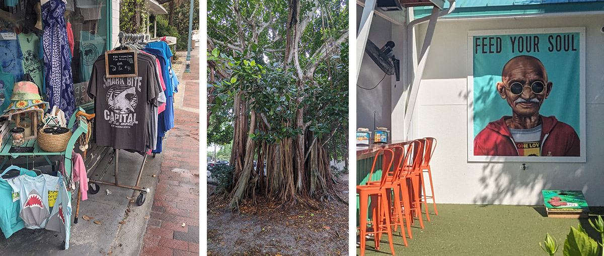 We parked our car and took advantage of the complimentary bike rentals for guests. We rode the bikes everywhere during our three-day stay, including along various parts of New Smyrna’s 17-mile stretch of white sandy beaches, through the town’s beautiful tree-lined and well-manicured neighbourhoods, and along the brick sidewalks of Canal Street with its moss-draped trees.