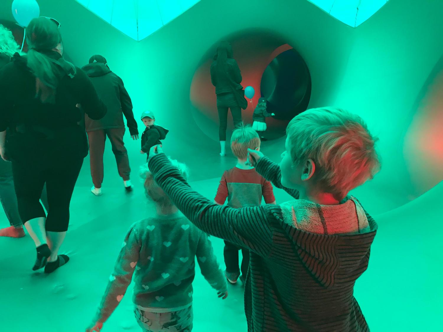 There were colours everywhere. It was like being in the Trolls movie. Every room you went in had a different colour and some places were warm and others were not as warm. It was really cool. Especially the green parts, because that’s my favourite colour. Rowan’s favourite was purple.