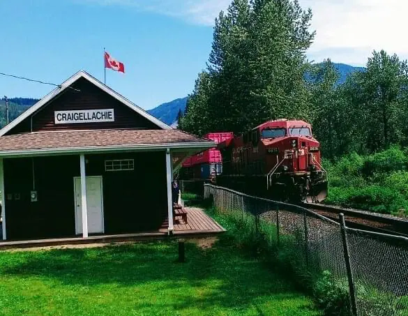 ABOVE: A CPR train roars through Craigellachie, BC, site of the Last Spike. (Photo: Dan McCarthy)