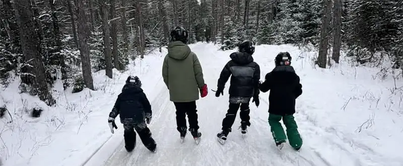 Icelynd has two kilometres of exquisite trails of natural ice surface. The paths wind their way through almost 100 acres of beautiful natural woods.